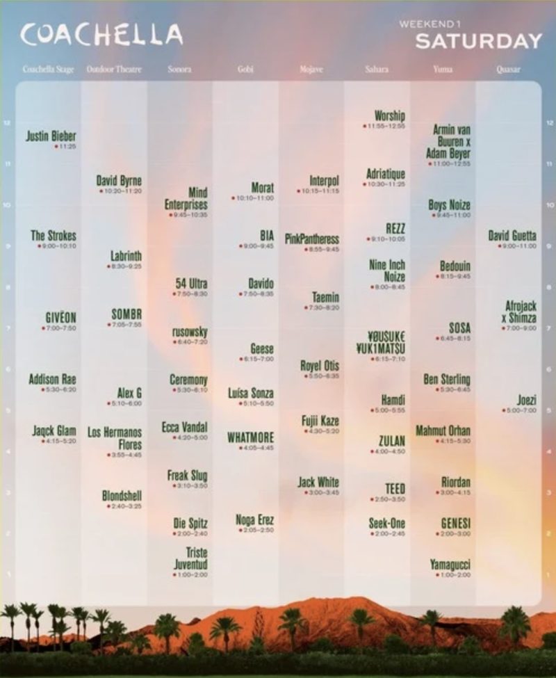 Además, se anticipa que Justin Bieber presente en vivo material completo de sus lanzamientos recientes, lo que lo convierte en uno de los actos más esperados del fin de semana. ¡Pero no te pierdas de más actos!